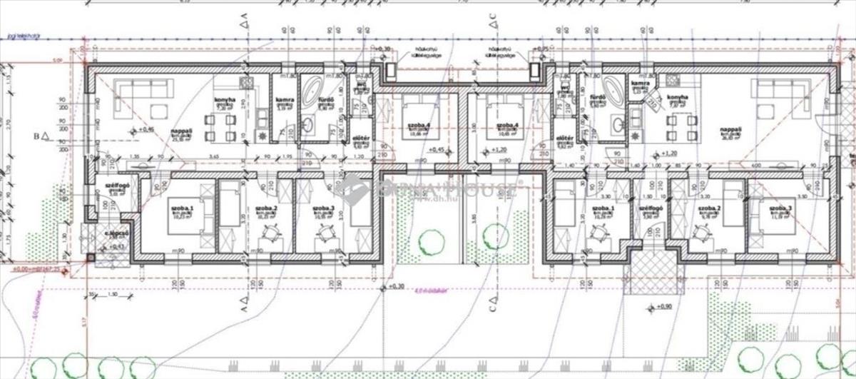 Fő előny: Maximális intimitás és nyugalom a telek hátsó részén.