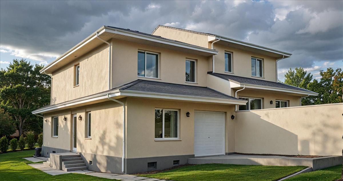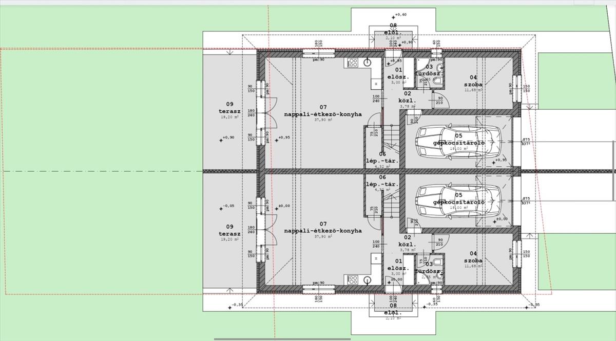 - az épület szabadon álló, a 2 lakás között pedig a 2 garázs foglal helyet