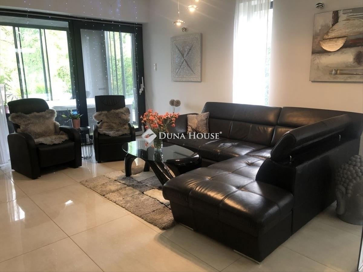 Eladó luxus ikerházfél Mogyoródon tóparti kilátással - energiahatékony megoldásokkal: napelem, elektromos autótöltő!Eladásra kínálok egy valódi ékszerdobozt privát wellnessel Mogyoród egyik legnyugodtabb, tóparti részén: egy 150 m²-es, luxuskivitelezésű ikerházfelet 972 m²-es saját telken, ahol a természet közelsége, az igényes design és a modern kényelem tökéletes harmóniát alkotnak. a 2019-ben épült, kétszintes otthon három tágas hálószobával, három elegáns fürdőszobával, világos amerikai konyhás nappalival, valamint teljesen gépesített, stílusosan berendezett konyhával várja új tulajdonosát. a nappalit egy letisztult bioetanol kandalló teszi még otthonosabbá. a ház igazi különlegessége a saját wellnessrészleg: az 50 nm-es napozóterasz, a kertkapcsolatos télikertből nyíló jógaterasz, valamint a fedett, jacuzzis terasz minden évszakban a kikapcsolódás színtere lehet. További extrák, amelyek kiemelik az ingatlant a kínálatból: Tóra, erdőre és kertre néző panoráma Nagy teljesítményű napelemrendszer Elektromos autótöltő Vízlágyító rendszer Fedett autóbeálló Külön mosókonyha Hideg-meleg vizes kerti zuhany Folyamatban lévő portaszolgálat a lakóparkbanAz otthon fűtéséről padlófűtés, cirkórendszer és napelem gondoskodik, a ház pedig teher-, per- és igénymentes, azonnal költözhető állapotban várja új lakóját. Ideális választás mindazok számára, akik egy csendes, természetközeli, mégis modern és energiatakarékos otthont keresnek, vagy hosszú távú, értékálló befektetésen gondolkodnak.