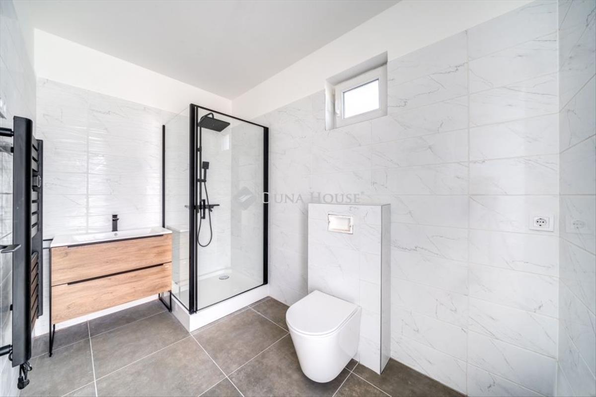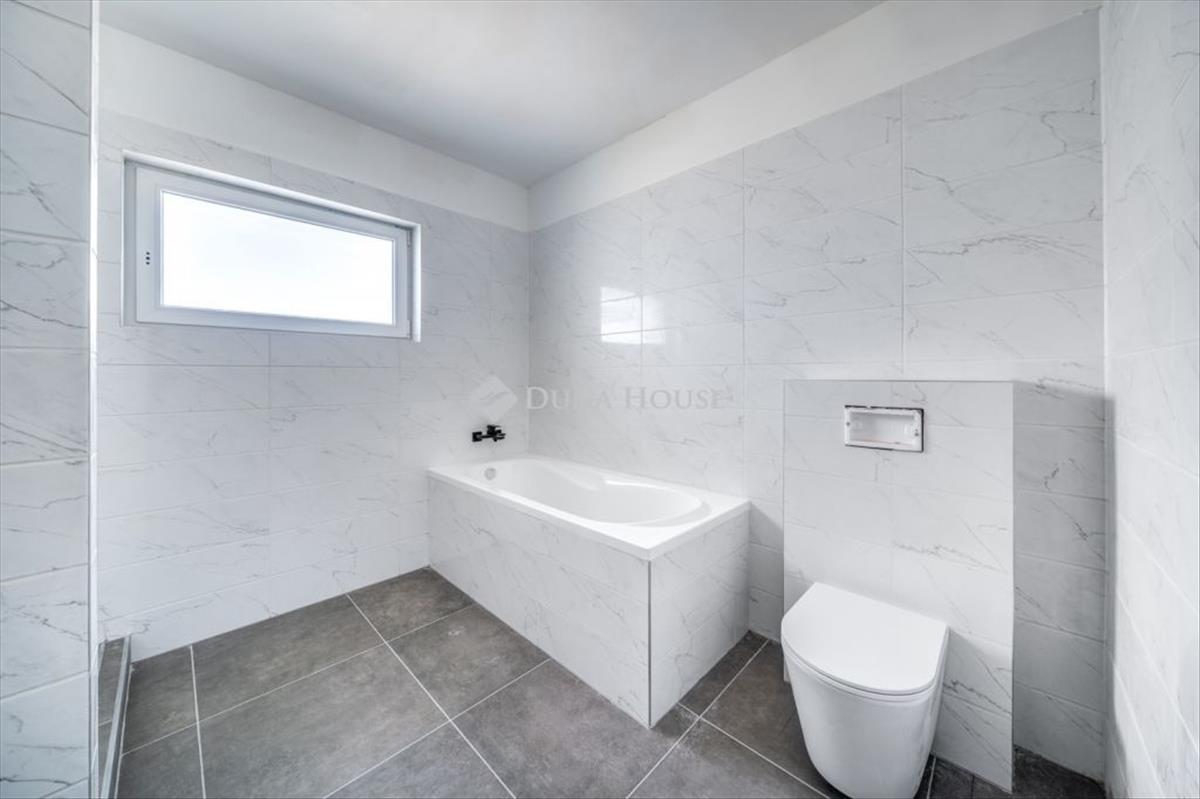 A kétszintes, napfényben úszó ingatlan prémium kategóriás burkolatokkal, szaniterekkel, hatalmas belmagasságú amerikai konyhás nappalival, három hálószobával és két tágas fürdőszobával rendelkezik.