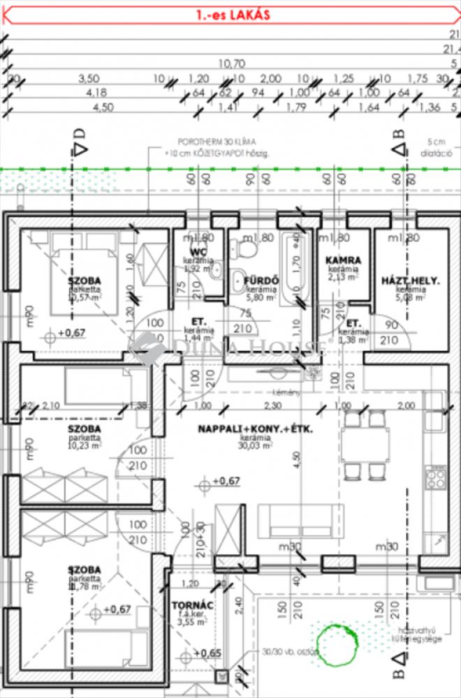 - Hőszigetelés: a külső falakon 10 cm vastag kőzetgyapot hőszigetelés készül