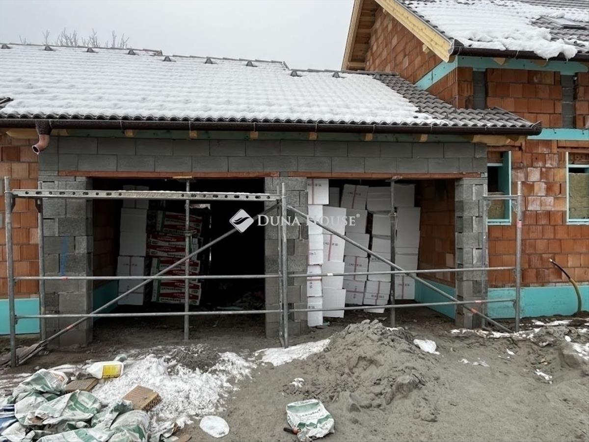 Monoron eladó, új építésű, 3 szoba + nappalis, dupla fürdőszobás, garázskapcsolatos ikerházfél, kb. , 200 Nm-es telekkel, csatornával!