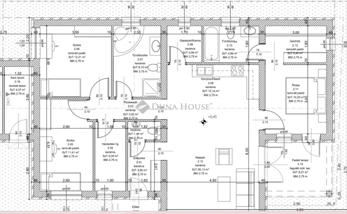 fedett terasz: 13, 05 m²