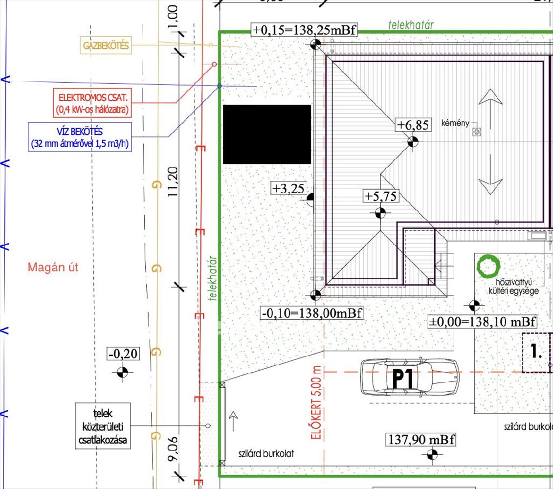 Teljes közművesítés, ideiglenes házi szennyvíztisztítóval (városi hálózatra való csatlakozás előkészítve).
