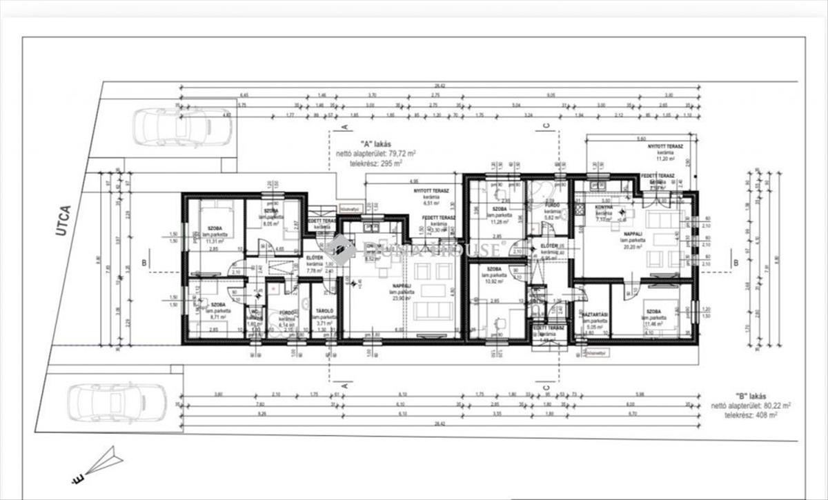 Az ingatlan 79, 72 m2-es kiváló elrendezésű igényes tervek alapján épülő ingatlan.