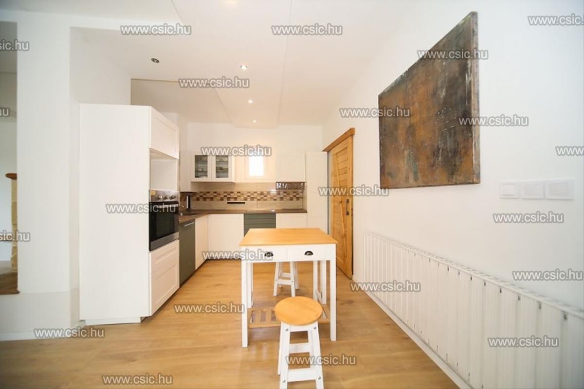 Eladó egy 2022-2024 között felújított nappali + 4 szobás ikerház Nagykovácsi Ófaluban, könnyen megközelíthető sík telken.