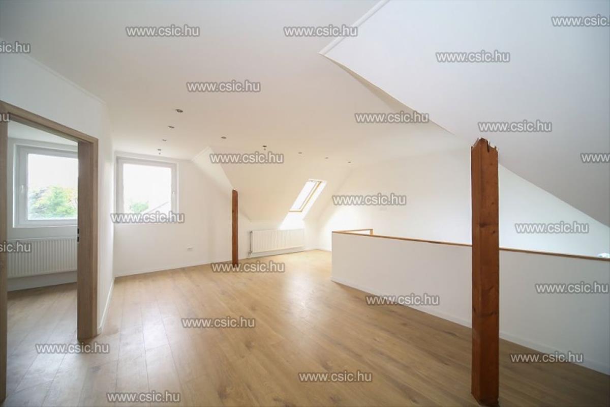 A földszinten a tágas étkező-konyha nappali mellett egy nagyméretű kamra, valamint egy kádas fürdőszoba és egy wc helyezkedik el. a saját használatú kertbe egy fedett teraszon át jutunk a nappaliból. a tetőtérben 4 hálószoba került kialakításra, melyekhez egy gardrób és egy zuhanyzós fürdőszoba, valamint egy külöálló wc tartozik. a lépcsőn felérve egy tágas és világos társasalgóba jutunk, ahonnan 4 hálószoba, egy zuhanyzós fürdőszoba és egy különálló wc nyílik.