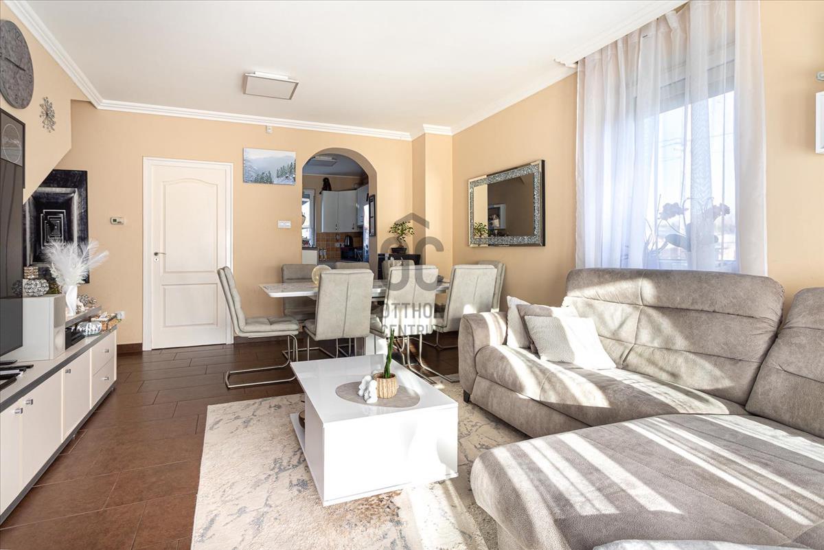 Megvételre kínálunk Nagytarcsán, a Felsőrét lakópark csendes zsákutcájában egy 88 m2-es, 2 szintes szélső sorházi lakást.