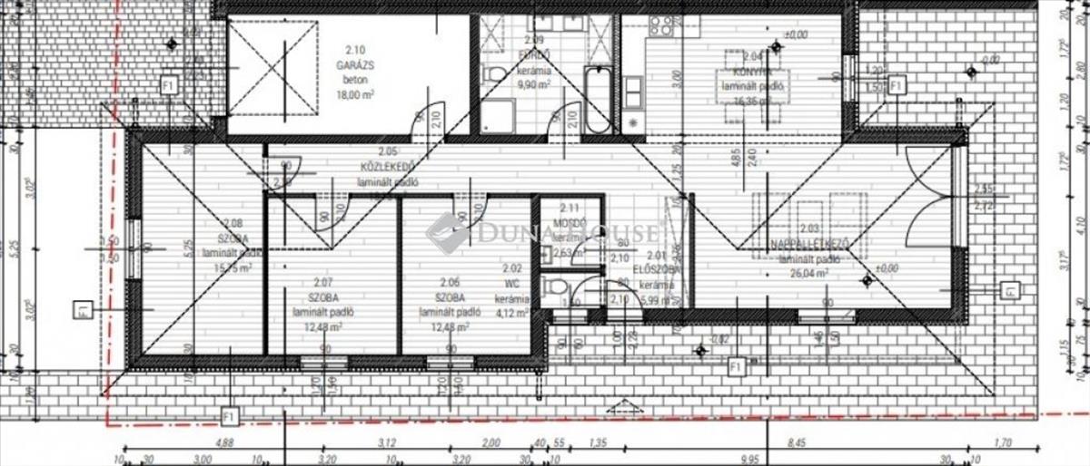 - 136, 87 m2, amely: garázs + amerikai konyhás nappaliból, 3 szobából, fürdőszobából és külön WC. -Ből áll.