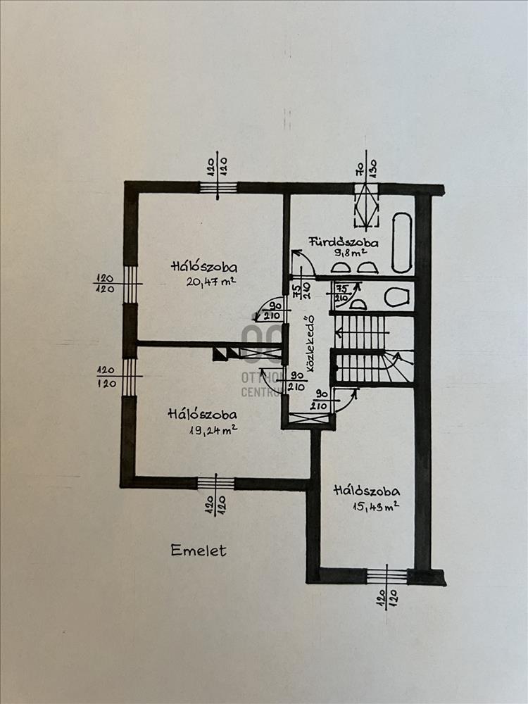 - emelet: 3 külön nyíló hálószoba, külön wc és fürdő