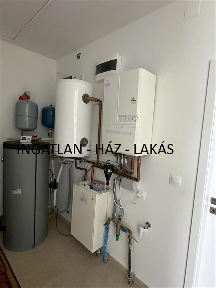 -fűtésről és a meleg vízellátásról 11, 5 kw-os hőszivattyús kazán gondoskodik, fal-hűtés-fűtéssel és padlófűtéses rendszerrel kialakítva, 2 db 200 literes indirekt tárolóval