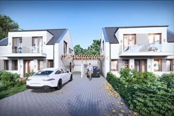 Nemesvámoson eladó egy új építésű, 138 m2-es, nappali + 4 szobás, tégla ikerház rész, a hozzá tartozó, kb. 400 m2-es telekkel.A hőszivattyús fűtésű ingatlan alsó szintjén amerikai konyhás nappali, fürdő + wc, egy szoba, előtér, egy háztartási helyiség, és egy gardrób került kialakításra, amin keresztül a kocsibeálló közvetlenül megközelíthető. .