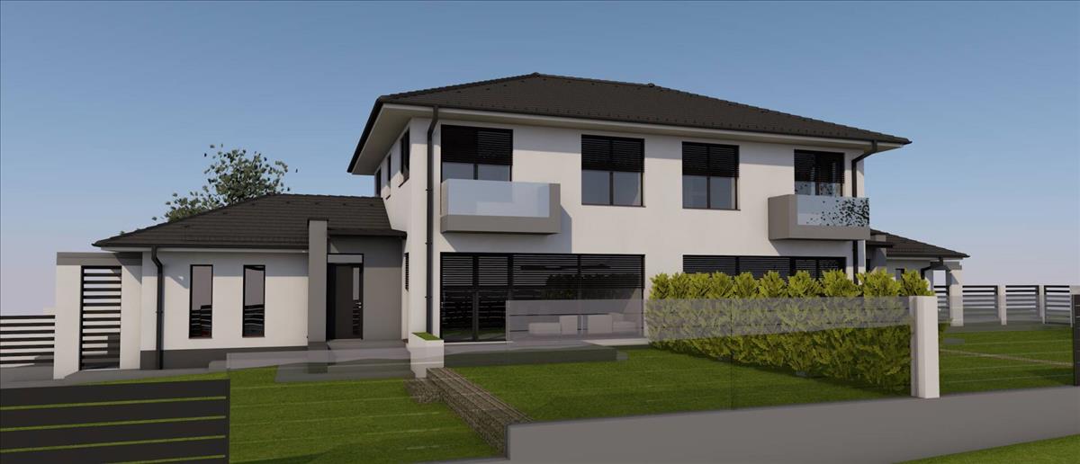 Eladó egy modern kialakítású, új építésű ikerház mindkét lakása, kiváló műszaki tartalommal és praktikus elrendezéssel.