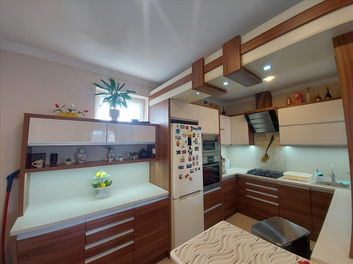 Élettér: 3 szoba, konyha + nappali + étkező, közlekedő, fürdőszoba + wc, gardrób, wc, fedett terasz.