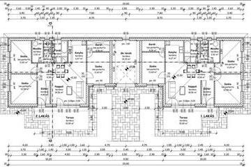 A ház nappali-konyha-étkező 15 nm-es teraszkapcsolattal, 3 külön nyíló szoba, gardrób, külön helyiségben lévő fürdőszoba, wc, mosókonyha elrendezésű.