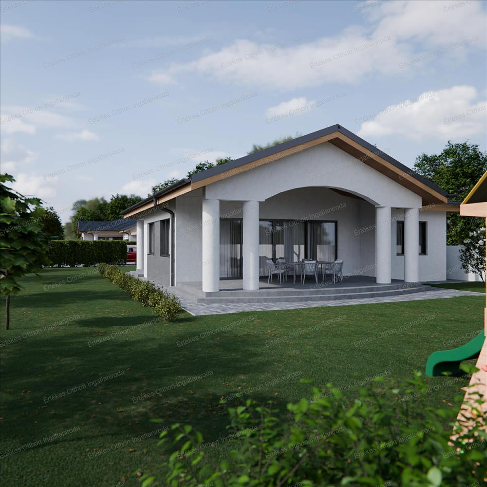 Nyíregyháza Újkistelekiszőlő csendes utcájában eladó egy egyedi kialakítású, prémium minőségben épülő ikerházrész, szerkezetkész állapotban.