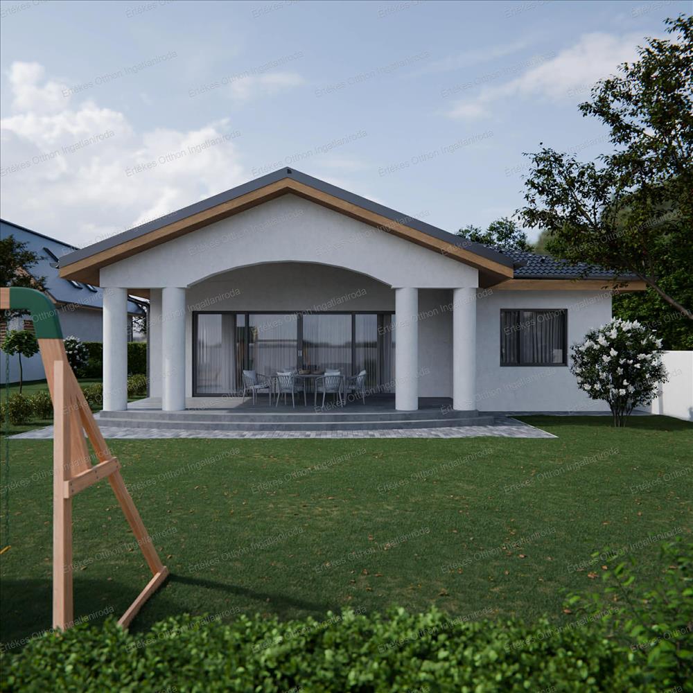 -140 m² lakótér + 43, 44 m² fedett terasz, 14, 66 m² fedett előtér