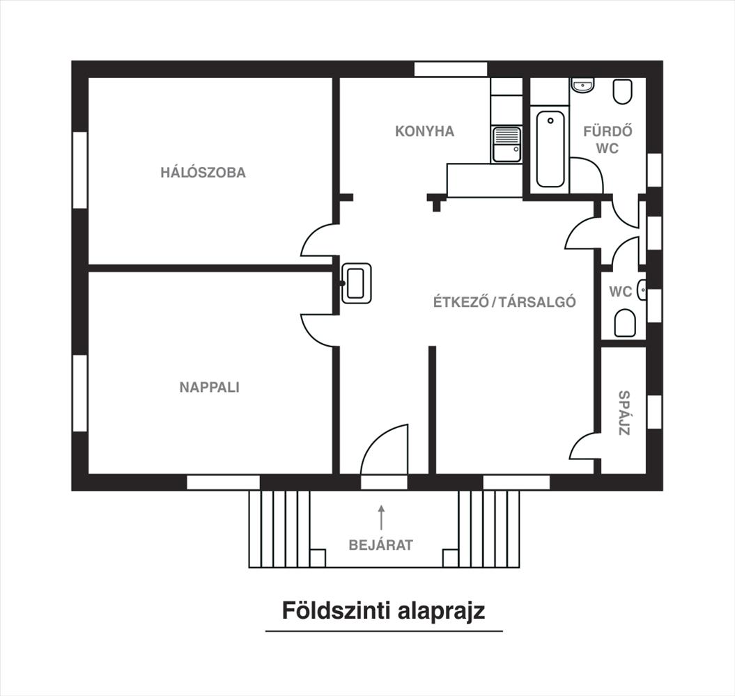 Elosztás: Nappali, étkező, 2 tágas szoba, konyha, fürdő-WC