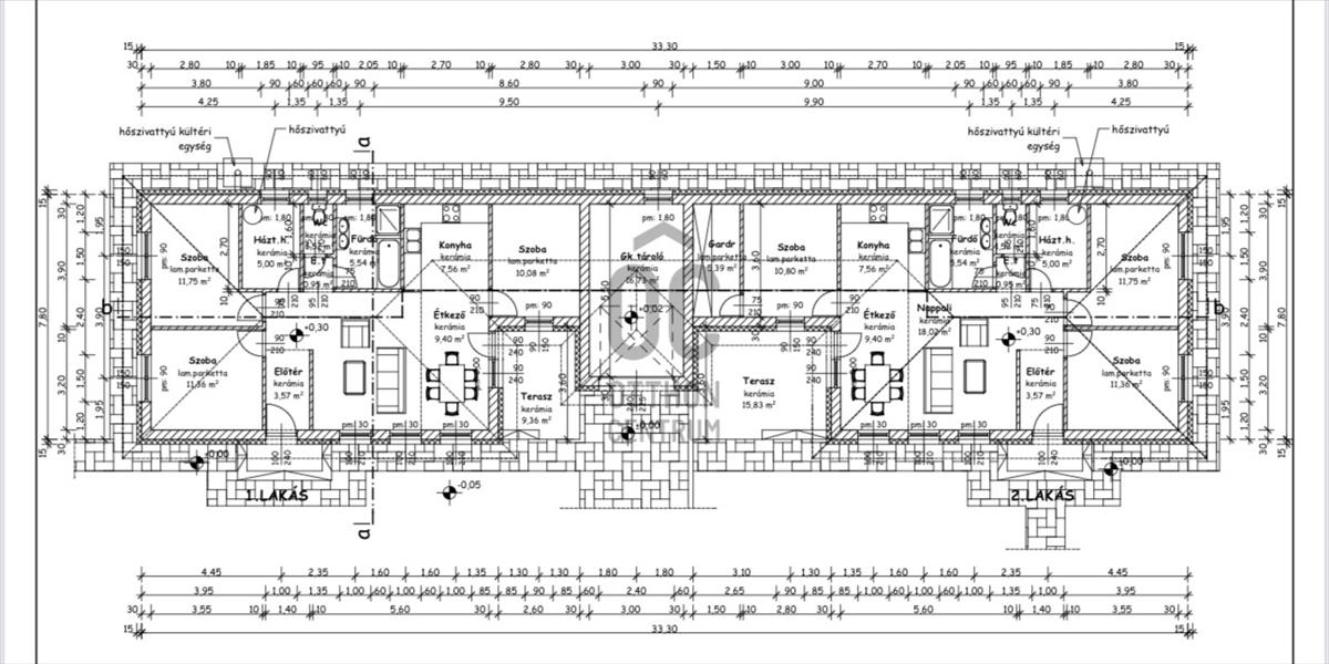 A tégla falazat és a korszerű hőszivattyús fűtésrendszer garantálja a tartósságot és az alacsony rezsit.