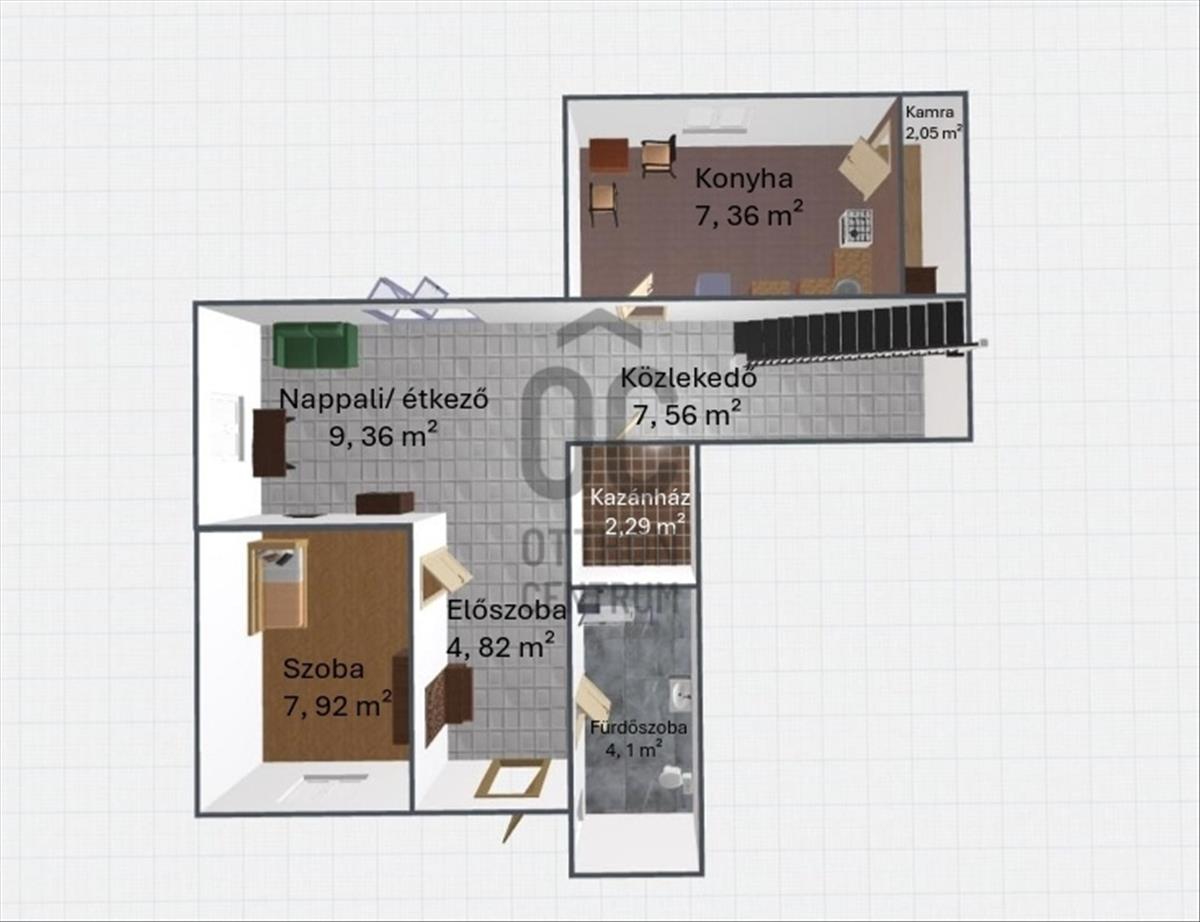 - 4 különnyíló szoba – családnak, dolgozószobának, vendégszobának tökéletes (az egyik szoba az ingatlanban jelenleg étkezőként funkcionál)