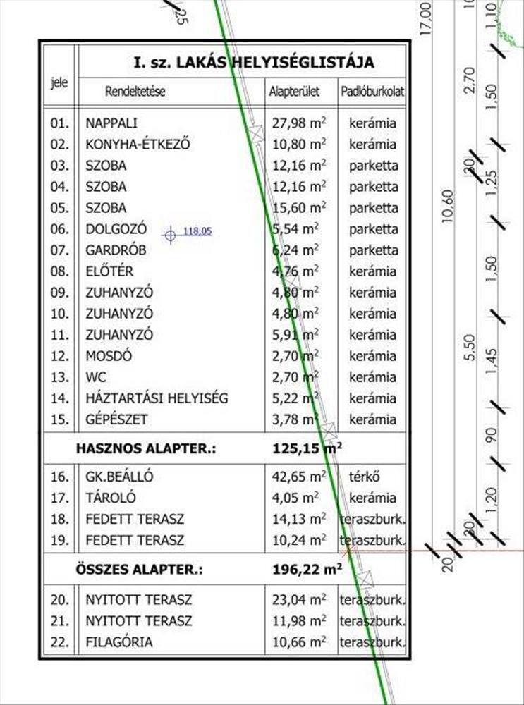 •125 m² lakótér, 71 m²+46 m² egyéb területek (Teraszok, Garázs, Tároló, Filagória)
