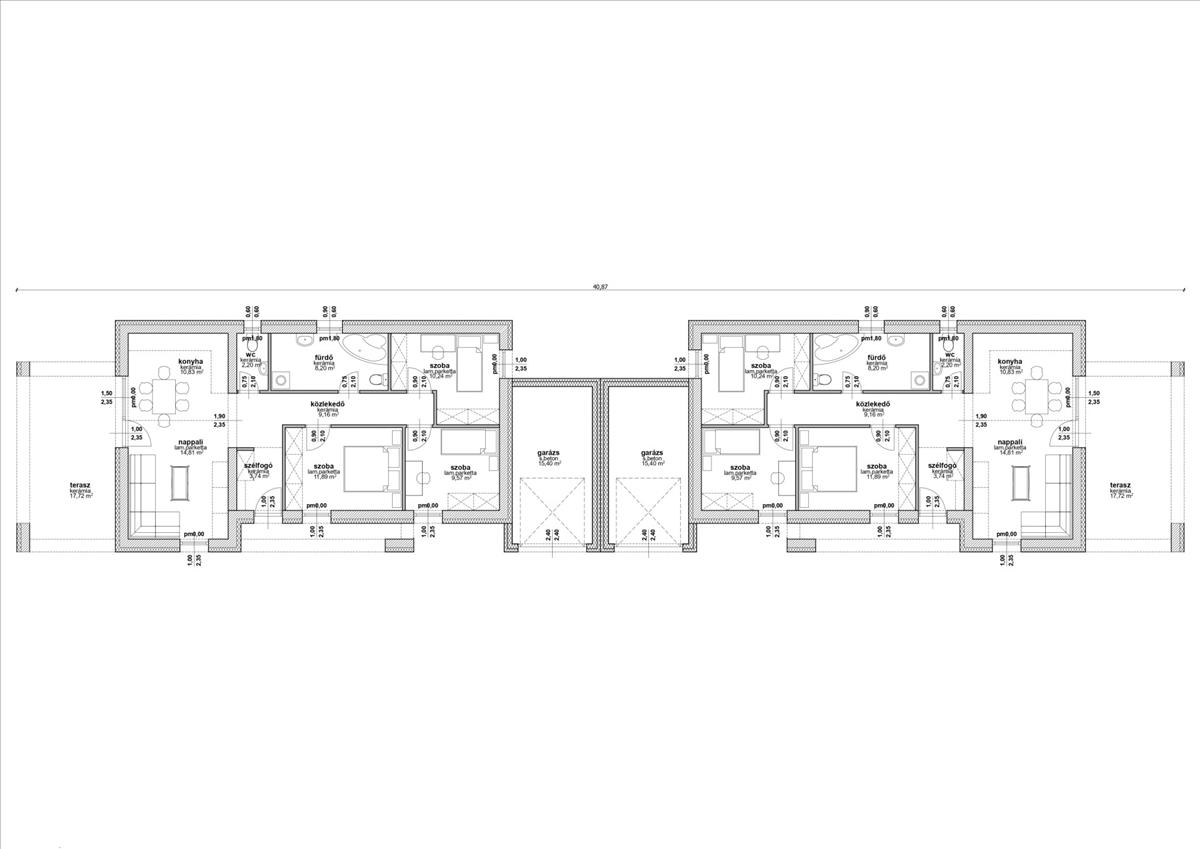 - beton alapozású, könnyűszerkezetes garázs, e mentén kapcsolódik az ikerház másik feléhez