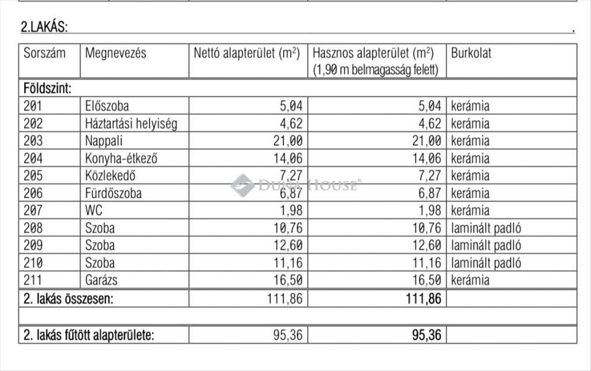 - Burkolatok: a helyiségek padlóburkolata kerámia és laminált parketta.