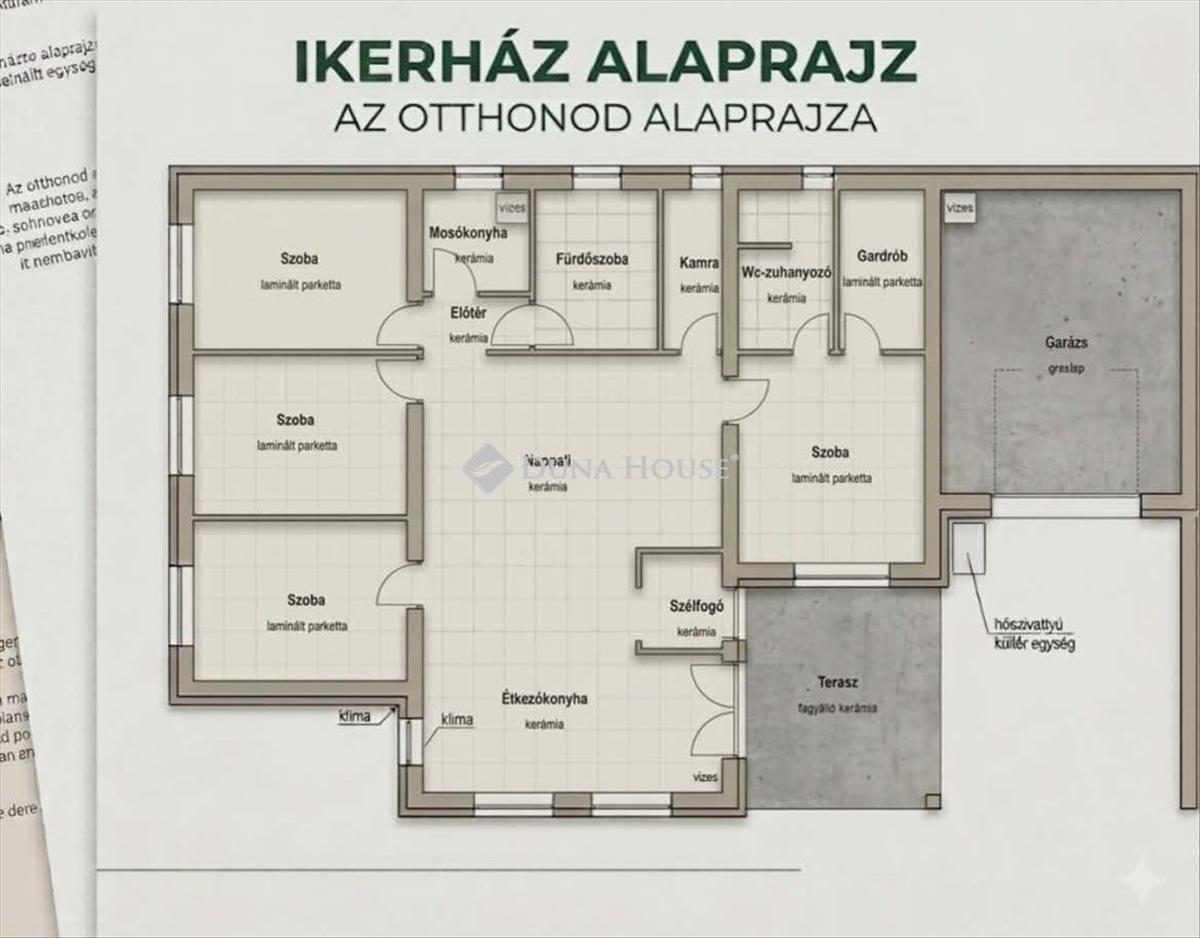 Nyíregyháza frekventált, kertvárosi részén, Oroson kínálunk eladásra egy 122 m²-es, téglaépítésű, magas műszaki tartalmú ikerházat. Az ingatlan kiemelkedik energiatakarékos hőszivattyús megoldásával, mennyezeti hűtés és padlófűtés biztosítja a kényelmet, radiátorok nélkül.