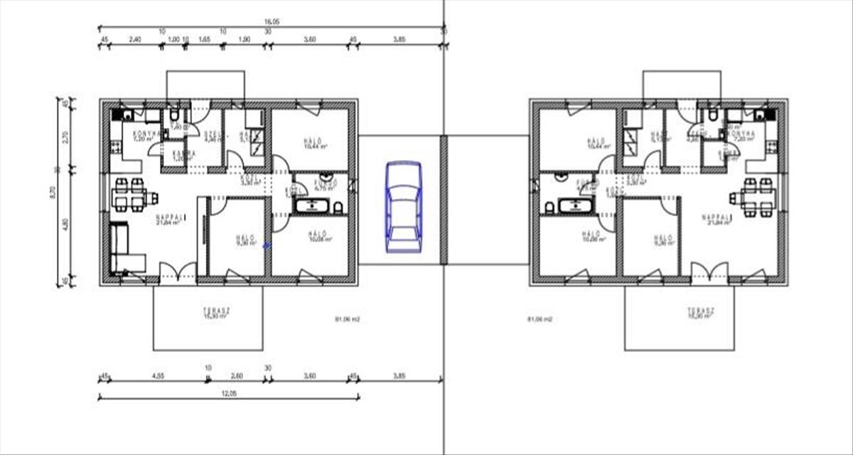 81 m² lakótér (nappali + 3 szoba)