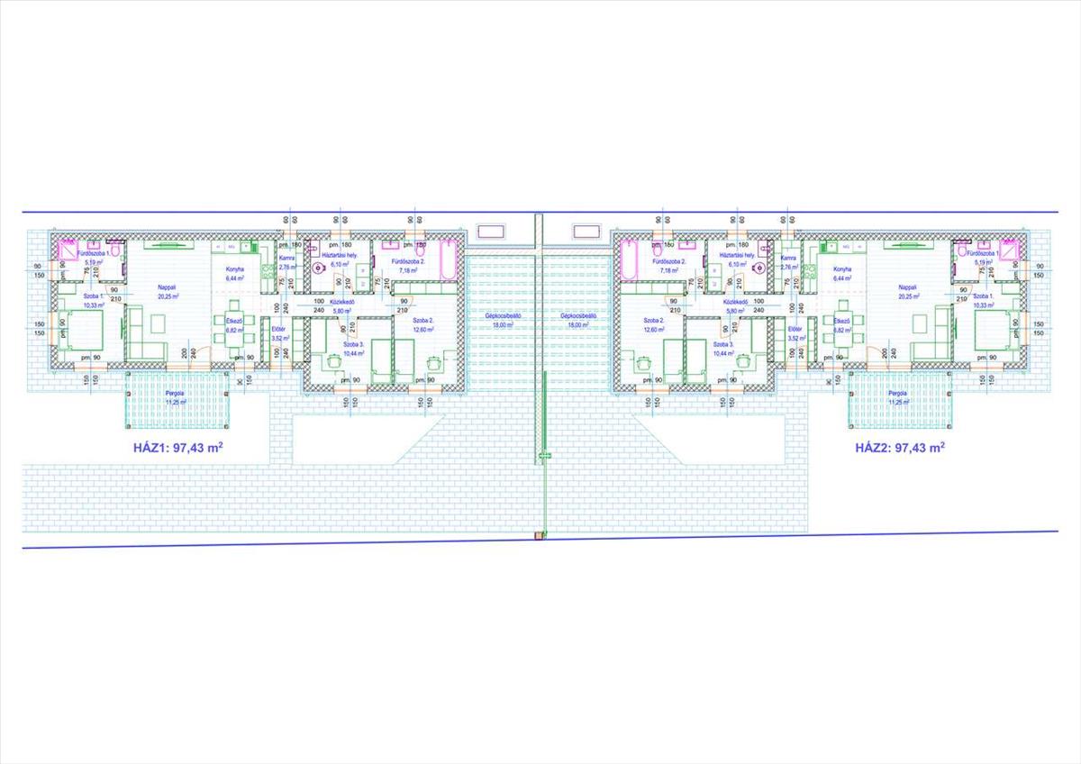 Nyírpazony-Kabaláson 2026-ba minőségi anyagokból épülő iker családi ház már foglalható. Az ingatlan alapozása monolit vasbeton sávalap, teherhordó falak 30 cm-s kerámia falazóblokk, válaszfalak 10 cm-s pórusbeton, tető szerkezet és a födém szeglemezes fa. Külső nyílászárók 3 rétegű üvegezésű műanyag mely kívülről antracit belülről fehér színű tartozik hozzá a tokkal hasonló színű redőny és mobil szúnyogháló. Belső falak 10-s tégla mely gépi vakolással végezve, glettelve, simítva. Szigetelés padlóban 12 cm-s, födémen 30 cm-s, homlokzat 15 cm-s, lábazat 15 cm-s, vízszigetelés 1 réteg bitumenes lemezszigetelés. Fűtése hőszivattyú mely padlóra vezérelt, 1 db. Split klíma 3, 5 kw. Meleg víz 200 L-s indirekt tartályról. a ház hasznos fűtött alapterülete 97 m2-s, 3 hálószoba, nappali+amerikai konyha, háztartási helység, 2 fürdőszoba+wc, kamra, továbbá tartozik hozzá 11 m2-s pergola és 18 m2-s autó beálló. Az árban hozzá értendő a zárt portán utcafrontról zsalublokkból épített kerítés a többi Kótaji táblás a térkövezett járda és autó felhajtó. Az ingatlan garantáltan megbízható kivitelező által épül. Amennyiben felkeltettem az érdeklődését kérem mihamarabb hívjon! FIX 3% lakáshitelre megvehető