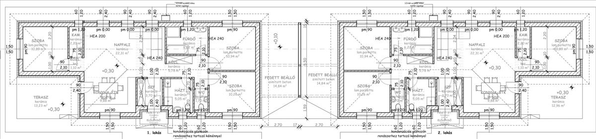 - lakótér 90m2, a terasz :13, 23 m2