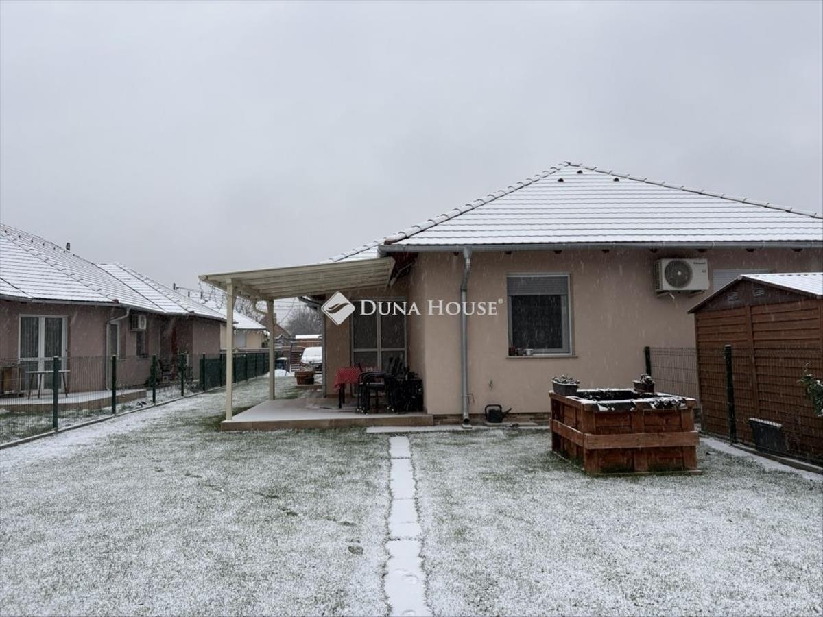 Megvételre kínálunk egy modern, energiatakarékos ikerházat 480 m²-es telken, új építésű házak környezetében! Az ingatlan 87 m² hasznos alapterülettel rendelkezik, melyen átgondolt, praktikus belső elrendezés került kialakításra. Három külön nyíló szoba és egy világos, amerikai konyhás nappali biztosítja a kényelmes mindennapokat. a fürdőszoba WC-vel egyben található, emellett egy külön wc, kamra és előtér is helyet kapott, így az otthon minden funkciója jól elkülönülten, mégis harmonikusan működik együtt. a kellemes hőérzetről padlófűtés gondoskodik, a szobákban radiátor, továbbá egy hűtő-fűtő klíma is beépítésre került a nappaliban. a ház kiváló hőszigeteléssel épült: a falakon 15 cm, a lábazaton 12 cm, míg a födémen 25 cm vastag fújt cellulóz szigetelés található, ami alacsony fenntartási költséget eredményez. Az elektromos hálózat 1x32 amperes, a bővítés elő van készítve, már csak az óra felszerelése szükséges. Az ingatlan riasztórendszerrel is felszerelt, amely tovább növeli a biztonságot. Az udvar fenntartását egy 17 méter mély fúrt kút és kiépített öntözőrendszer segíti. a telken egy 12 m²-es tároló is található, valamint két gépkocsi számára kialakított beálló, amelyek közül az egyik fedett és elektromos kapun keresztül közelíthető meg. a dupla kapus kialakítás tovább növeli a kényelmet és a biztonságot. Az ingatlan ideális választás családok számára is. Keressen bizalommal a hét bármely napján. FIX 3% lakáshitelre megvehető