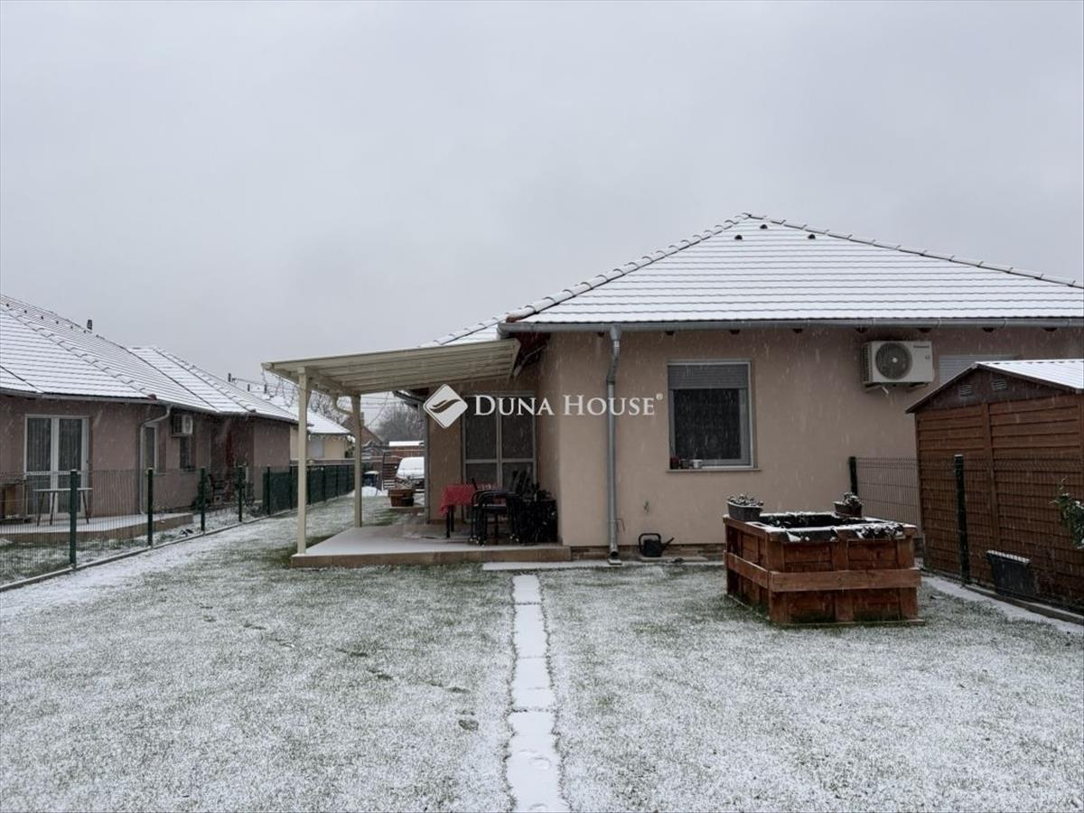 Megvételre kínálunk egy modern, energiatakarékos ikerházat 480 m²-es telken, új építésű házak környezetében! Az ingatlan 87 m² hasznos alapterülettel rendelkezik, melyen átgondolt, praktikus belső elrendezés került kialakításra. Három külön nyíló szoba és egy világos, amerikai konyhás nappali biztosítja a kényelmes mindennapokat. a fürdőszoba WC-vel egyben található, emellett egy külön wc, kamra és előtér is helyet kapott, így az otthon minden funkciója jól elkülönülten, mégis harmonikusan működik együtt. a kellemes hőérzetről padlófűtés gondoskodik, a szobákban radiátor, továbbá egy hűtő-fűtő klíma is beépítésre került a nappaliban. a ház kiváló hőszigeteléssel épült: a falakon 15 cm, a lábazaton 12 cm, míg a födémen 25 cm vastag fújt cellulóz szigetelés található, ami alacsony fenntartási költséget eredményez. Az elektromos hálózat 1x32 amperes, a bővítés elő van készítve, már csak az óra felszerelése szükséges. Az ingatlan riasztórendszerrel is felszerelt, amely tovább növeli a biztonságot. Az udvar fenntartását egy 17 méter mély fúrt kút és kiépített öntözőrendszer segíti. a telken egy 12 m²-es tároló is található, valamint két gépkocsi számára kialakított beálló, amelyek közül az egyik fedett és elektromos kapun keresztül közelíthető meg. a dupla kapus kialakítás tovább növeli a kényelmet és a biztonságot. Az ingatlan ideális választás családok számára is. Keressen bizalommal a hét bármely napján.