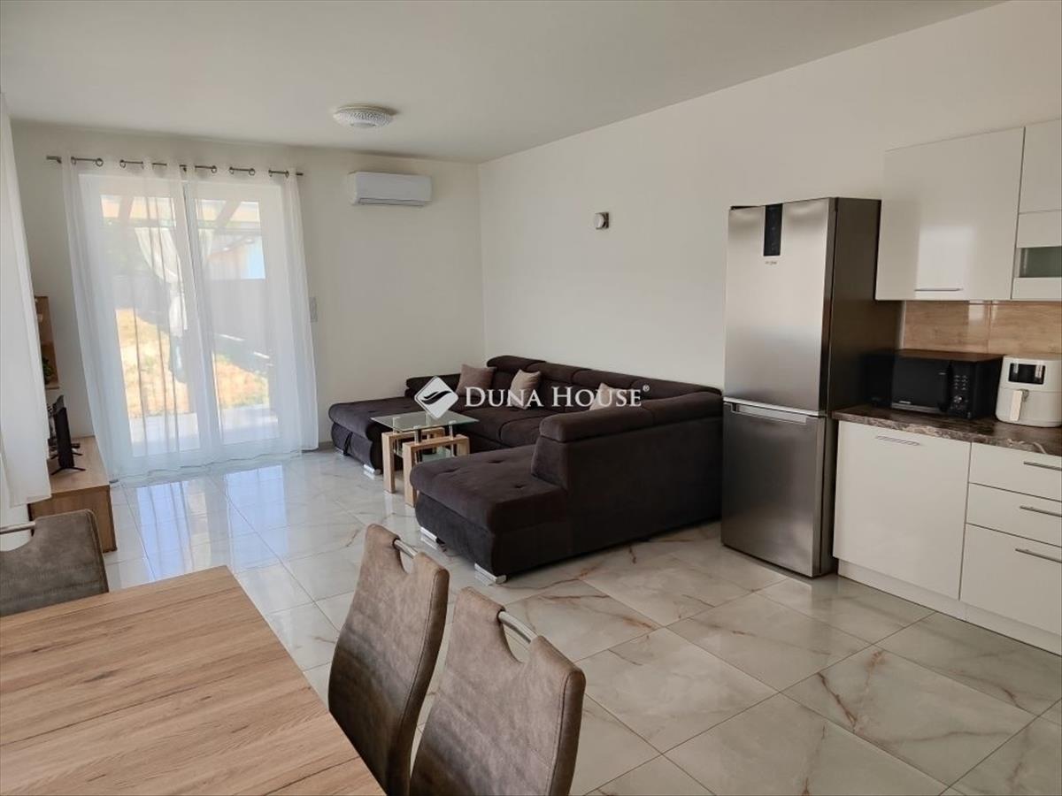 Eladó ikerház Ócsán! Ócsa frekventált részén eladó egy 85m2-es ikerház 570m2 es telekkel. Az épület 2021-ben épült 30-as Porotherm téglából, 15cm-es külső hőszigeteléssel, 3rétegü, 6 légkamrás nyilászárókal, aluminium redőnyökkel. 2023-Ban az ingatlanra 5, 33 Kw-os napelem került telepítésre. Ennek köszönhetősen minimális rezsiköltsége van a háznak! Az ingatlanban 3 szoba, amerikai konyhás nappali, kamra, háztartási helység, fürdőszoba és külön mellékhelyiség is megtalálható. a két ikerház fél között dupla falazatt van. Riasztó minden helységben külön érzékelővel. Fűtést elektromos kazán adja padlófútésen keresztűl, a hűtést két darab 3. 5 Kw-os klíma készülék biztosítja. Nappaliból kilépve egy 15m2-es fedett terasz kínál kiváló pihenési lehetőséget. Az kertben egy 36m2-es dupla garázs és egy 12m2-es tároló található még. Az utcafronti kapu automatizált. a megvételre kínált családi ház egy igazán különleges lehetőséget kínál Önnek Pest vármegyében Budapesttől néhány kilométerre. M0-as körgyűrűtől és az M5-ös autópályától mindössze 5 percre található, kiváló helyszín álmai otthonának megvalósításához. Iskola, óvoda, boltok, vasútállomás, hivatalok mindössze 5 percnyi sétára találhatóak. Amennyiben felkeltettem érdeklődését, keressen bizalommal a hét bármely napján, akár hétvégén is!