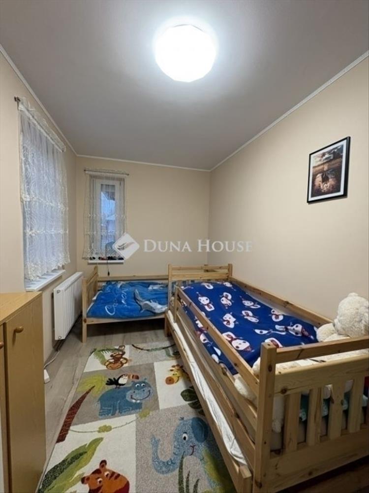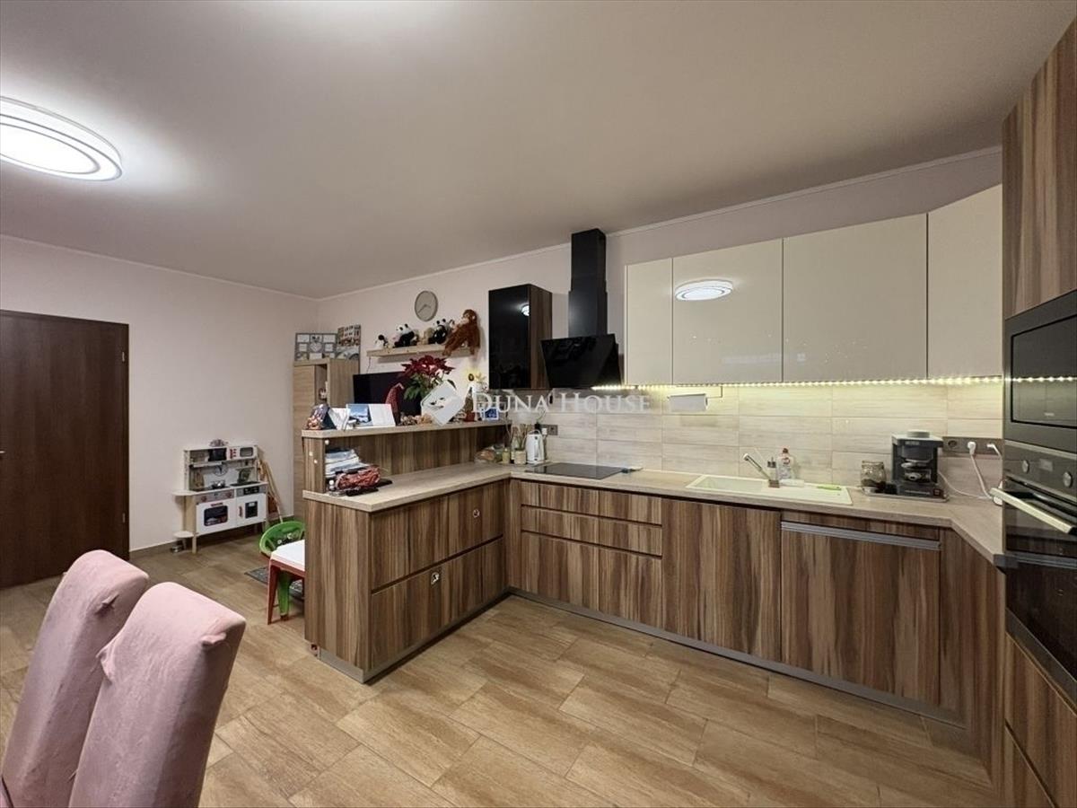 Megvételre kínálunk egy modern, energiatakarékos ikerházat 480 m²-es telken, új építésű házak környezetében! Az ingatlan 87 m² hasznos alapterülettel rendelkezik, melyen átgondolt, praktikus belső elrendezés került kialakításra. Három külön nyíló szoba és egy világos, amerikai konyhás nappali biztosítja a kényelmes mindennapokat. a fürdőszoba WC-vel egyben található, emellett egy külön wc, kamra és előtér is helyet kapott, így az otthon minden funkciója jól elkülönülten, mégis harmonikusan működik együtt. a kellemes hőérzetről padlófűtés gondoskodik, a szobákban radiátor, továbbá egy hűtő-fűtő klíma is beépítésre került a nappaliban. a ház kiváló hőszigeteléssel épült: a falakon 15 cm, a lábazaton 12 cm, míg a födémen 25 cm vastag fújt cellulóz szigetelés található, ami alacsony fenntartási költséget eredményez. Az elektromos hálózat 1x32 amperes, a bővítés elő van készítve, már csak az óra felszerelése szükséges. Az ingatlan riasztórendszerrel is felszerelt, amely tovább növeli a biztonságot. Az udvar fenntartását egy 17 méter mély fúrt kút és kiépített öntözőrendszer segíti. a telken egy 12 m²-es tároló is található, valamint két gépkocsi számára kialakított beálló, amelyek közül az egyik fedett és elektromos kapun keresztül közelíthető meg. a dupla kapus kialakítás tovább növeli a kényelmet és a biztonságot. Az ingatlan ideális választás családok számára is. Keressen bizalommal a hét bármely napján. FIX 3% lakáshitelre megvehető