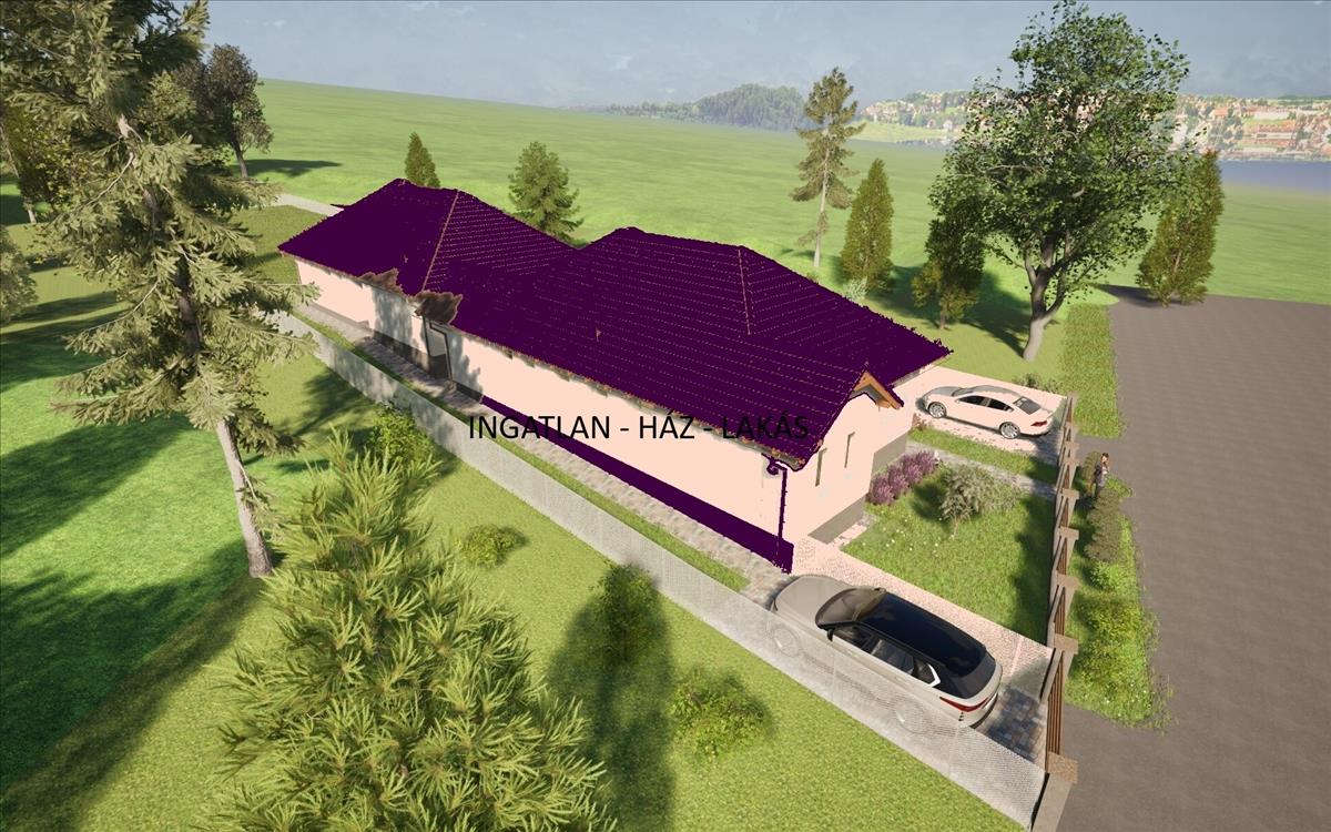 hátsó házhoz tartozó telekrész 900 nm, gépkocsibeálló, terasz 18 nm