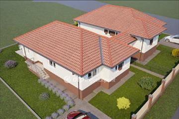 A 734m2-es telken 2 X 81, 79m2-es hasznos alapterületű ház épül, tárolónál összekötve.