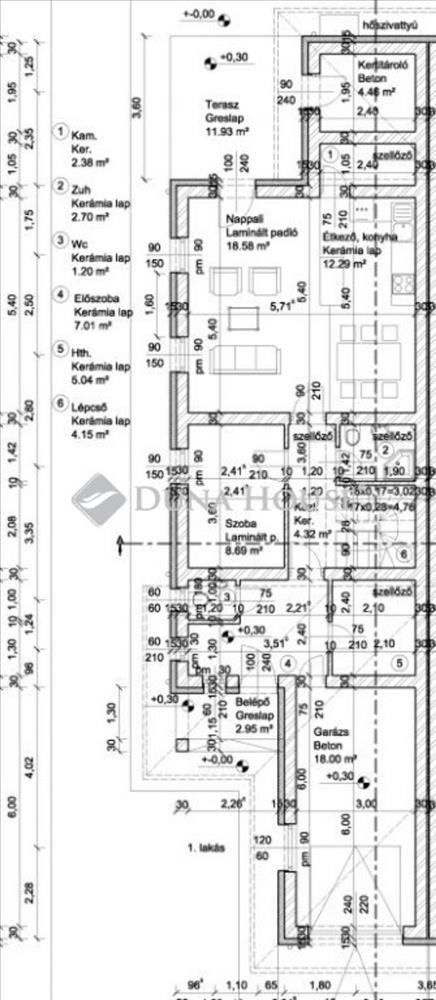 - Főfalak 30 cm Porotherm, közfalak 10 cm