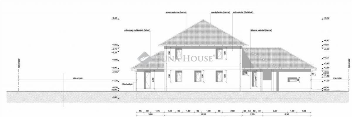 Műszaki tartalom:- sávalap- Főfalak 30 cm Porotherm, közfalak 10 cm- Födém beton gerendázat beton béléstestekkel- Tető: hagyományos fa ácsolás betoncseréppel ellátva- Szigetelés 15 cm nikecell v. 12 Cm grafitos fehér színezéssel- Fűtés és melegvíz 10 kw Hőszivattyúval megoldva- Áram: 1x 32a- Utcafronti kerítés zsalukővel, színezve, fa kerítés elemekkel.
