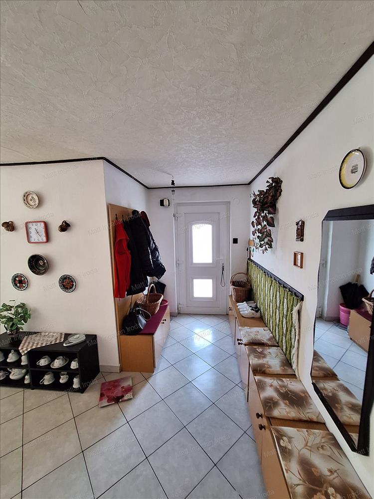 A felső lakrészbe külső lépcsőn tudunk bejutni. Tágas előszoba, konyha étkezővel, spejz, fürdőszoba és 3 szoba lett kialakítva.