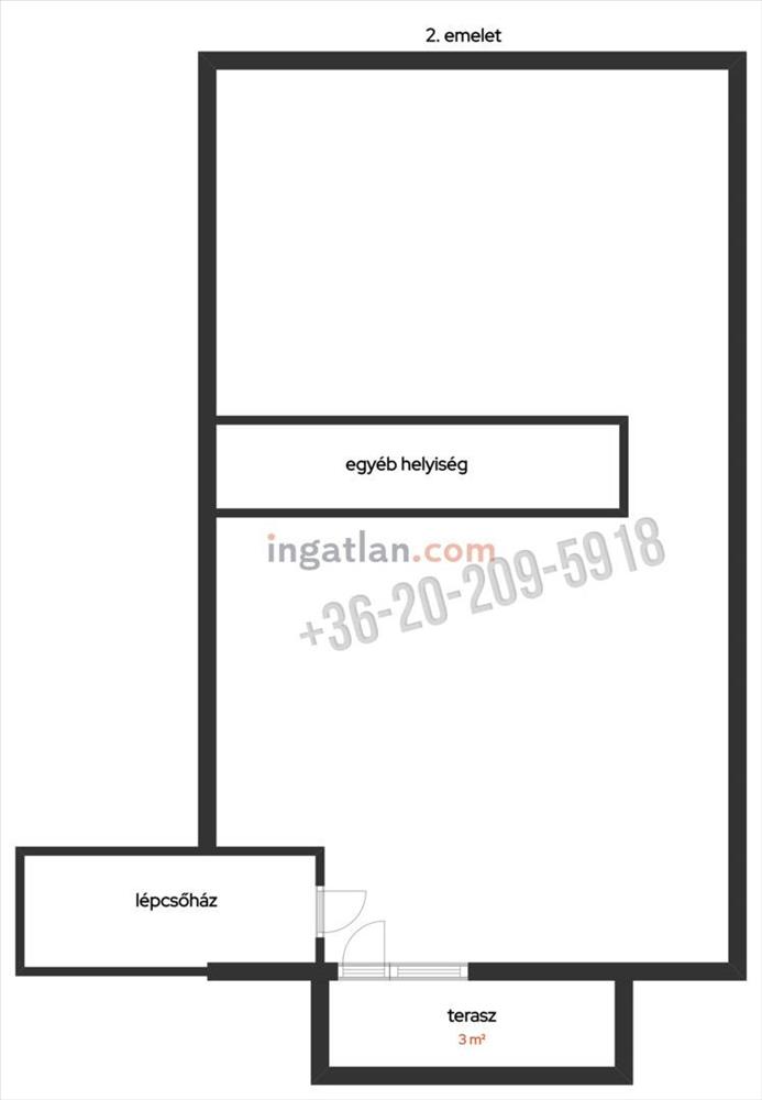 A felsőszint erkélyes és jelenleg egy nagyobb helyiségből áll, de igény szerint alakítható, leválasztható akár két hálószobára.