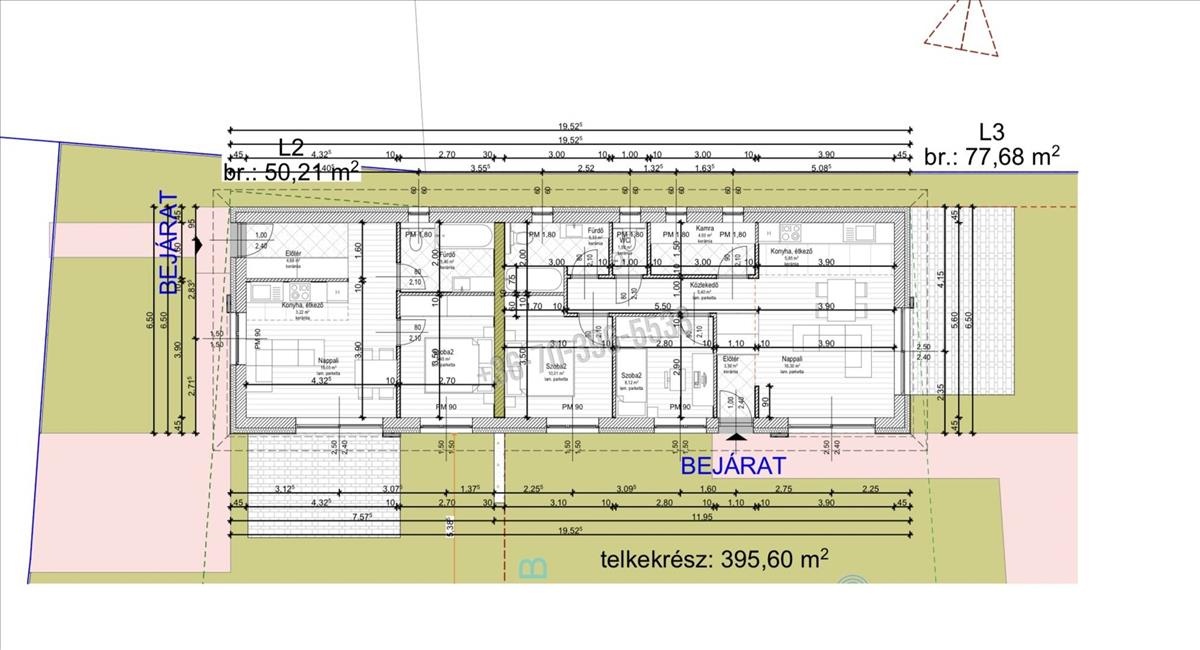 Az ikerház másik fele – 60 m² alapterülettel – igény esetén szintén megvásárolható, a két lakrész összenyitható, így akár nagyobb családi otthonként is kiváló megoldást jelent.