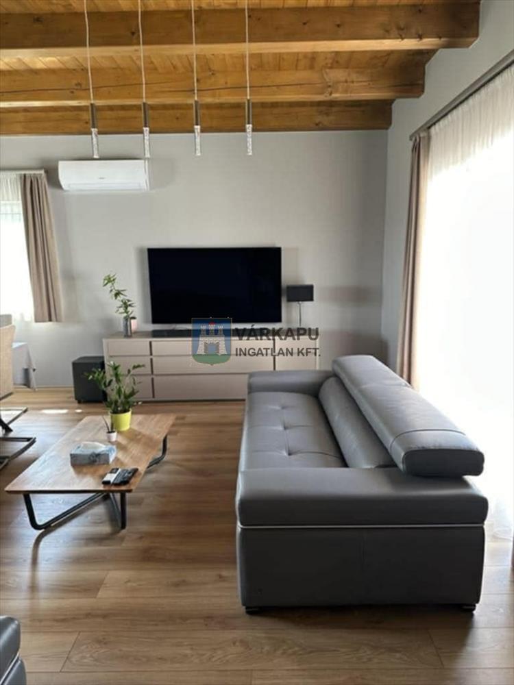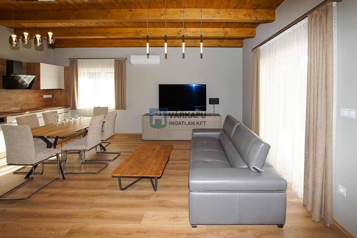 A vidékies hangulatot fagerendás mennyezet és prémium minőségű anyagok teszik otthonossá, míg a modern komfortot hőszivattyús padlófűtés és légkondicionáló biztosítja. a szobákban nagyméretű gardróbszekrények gondoskodnak a kényelmes tárolásról, melyek az ingatlanban maradnak.