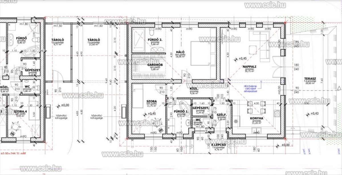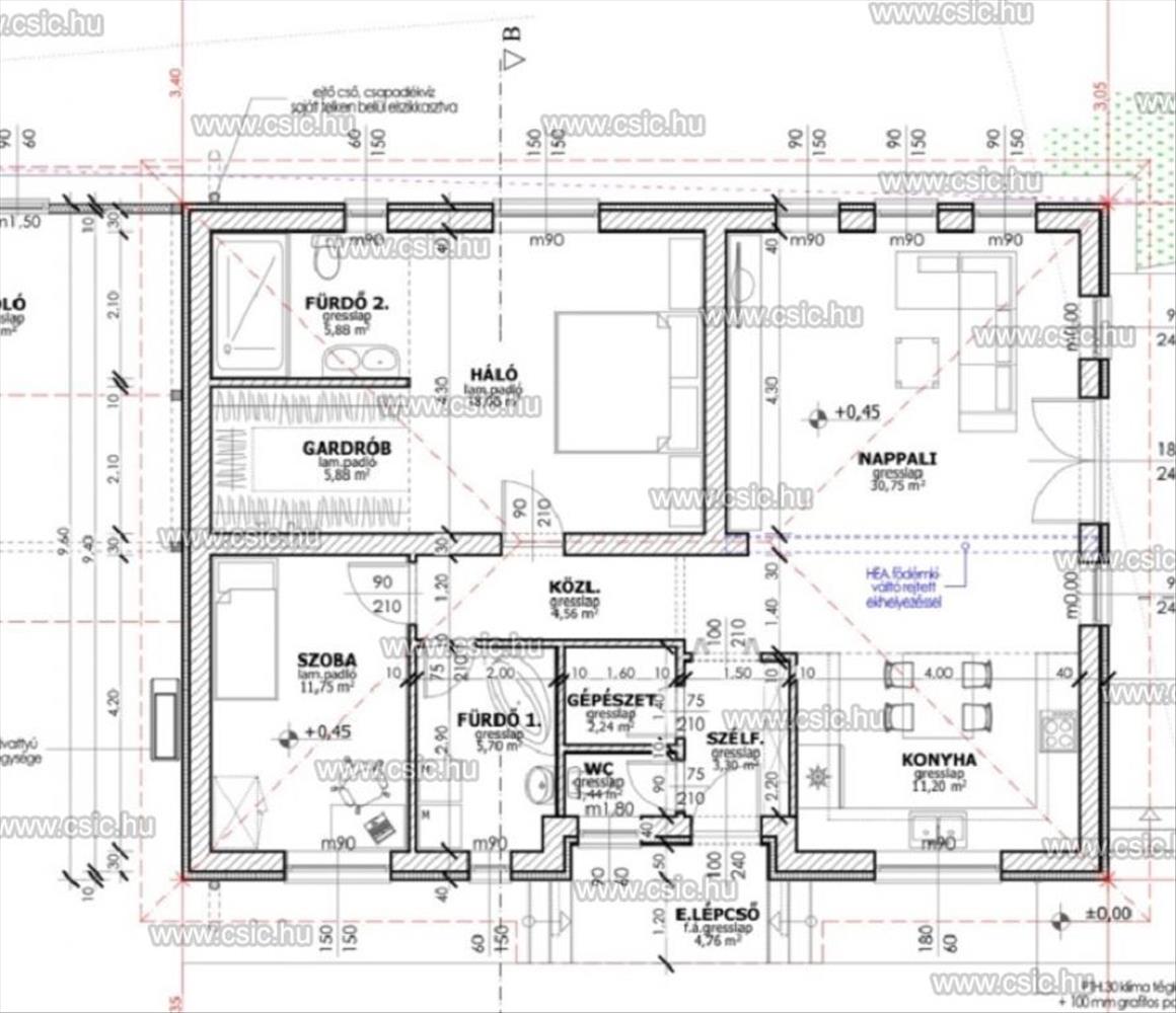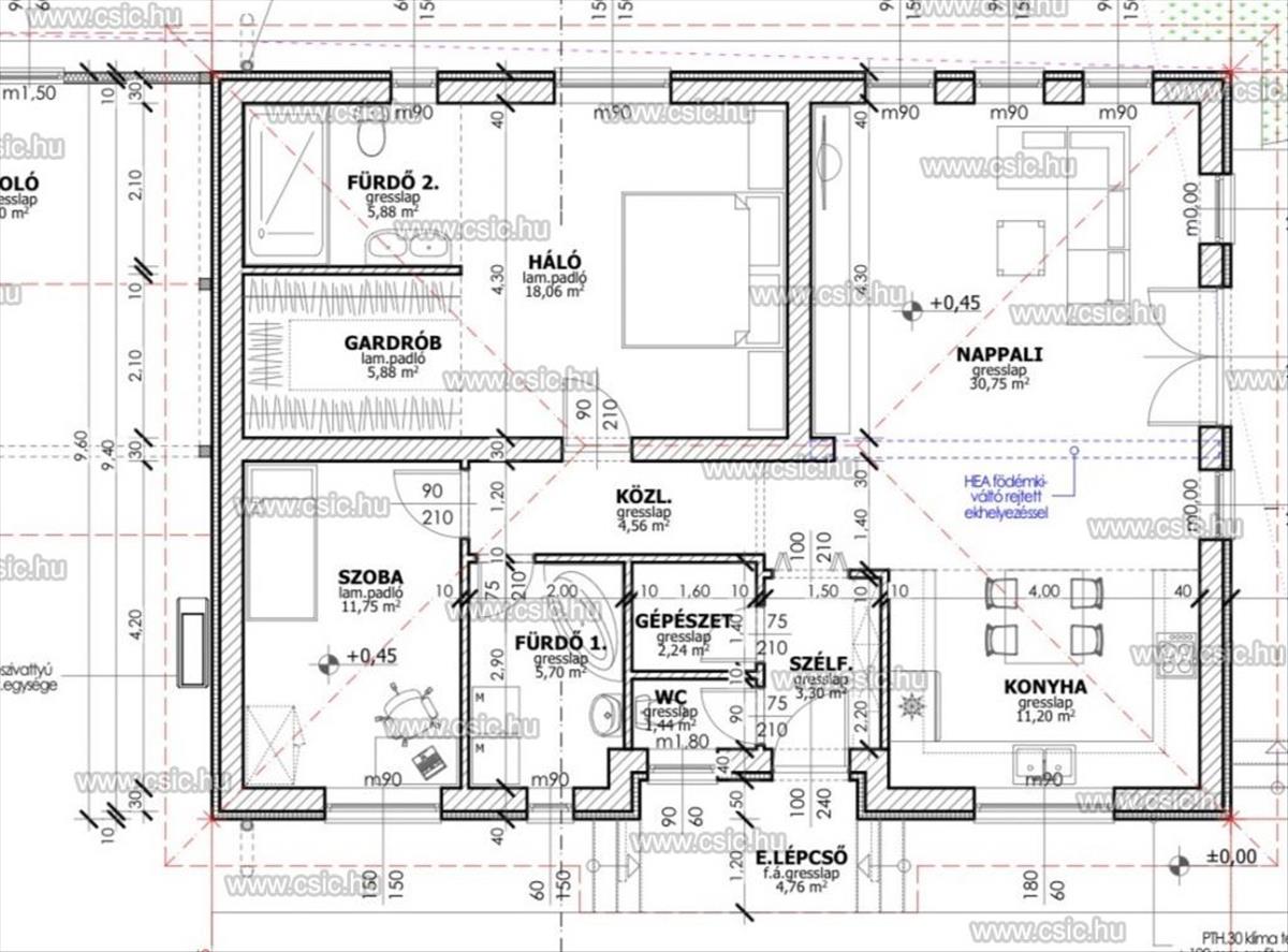 Az ingatlant a mai, modern igényeknek megfelelően hőszivattyús padlófűtéssel, Porotherm 30-as okostéglával tervezték, mely biztosítja a gazdaságos fenntarthatóságot.