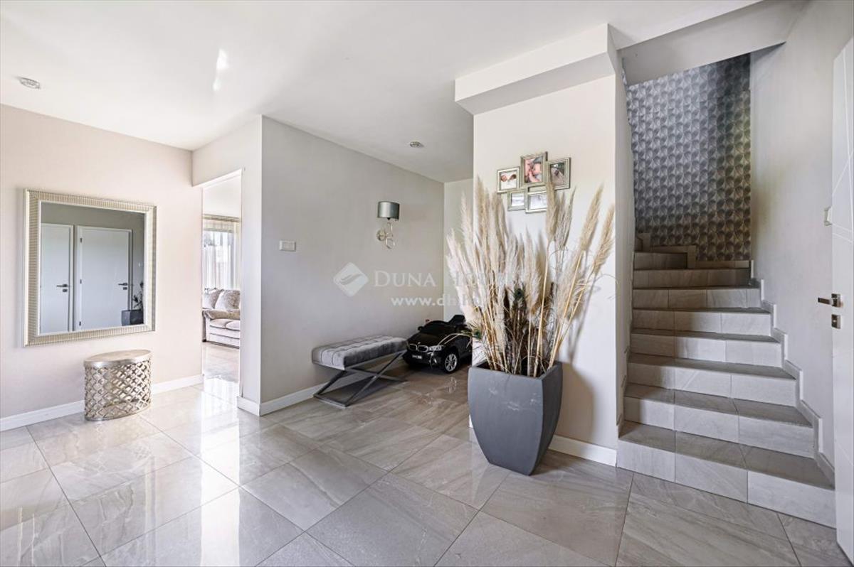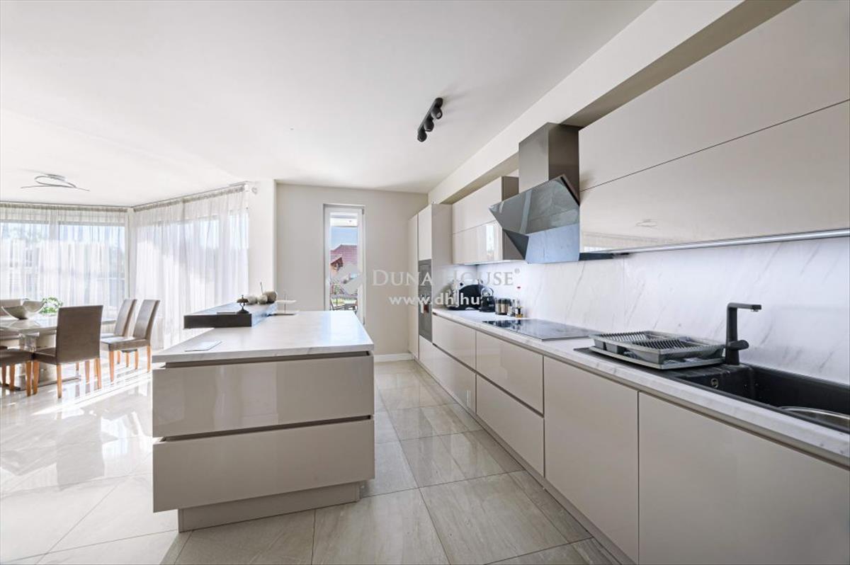 Mindkét lakásban a földszinten egy étkezőrészt is magába foglaló amerikai konyhás hatalmas nappali van exkluzív konyhabútorral, valamint egy modern előtér, egy elegáns fürdő külön wc, pakoló és szerviz helyiségek. Az emeleten mindkét lakásban 4-4 szobát, 1-2 fürdőt és rengeteg teraszt találunk. a fenti egybefüggő teraszokról gyönyörű a panoráma. Az egész házat lakberendező tervezte. Egyedi bútorok, és megoldások teszik álomotthonná. Luxus kivitelű, modern, kiváló minőségű anyagok használatával. Egyedileg gyártott, magas minőségű nyílászárók a nappaliban, motoros távműködtetésű redőnyös, ablakok. a nyílászárók és a bejárati ajtók műanyag kivitelezésűek.