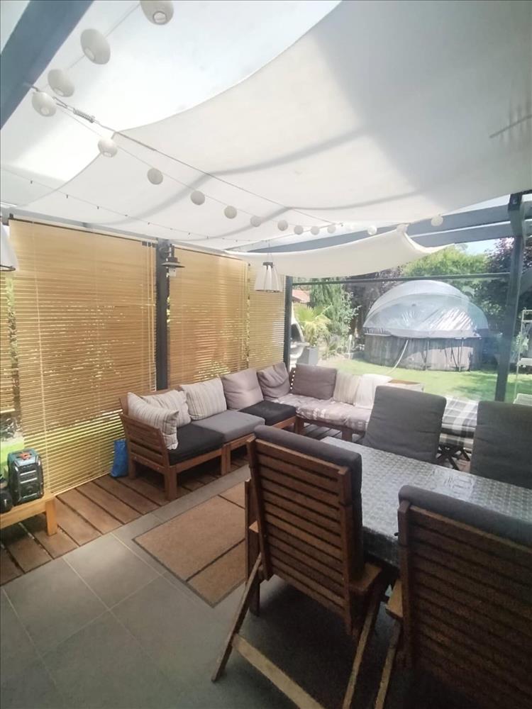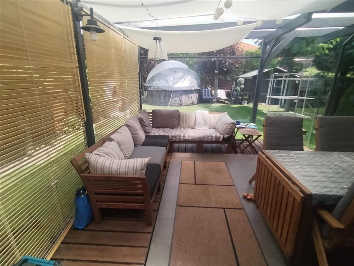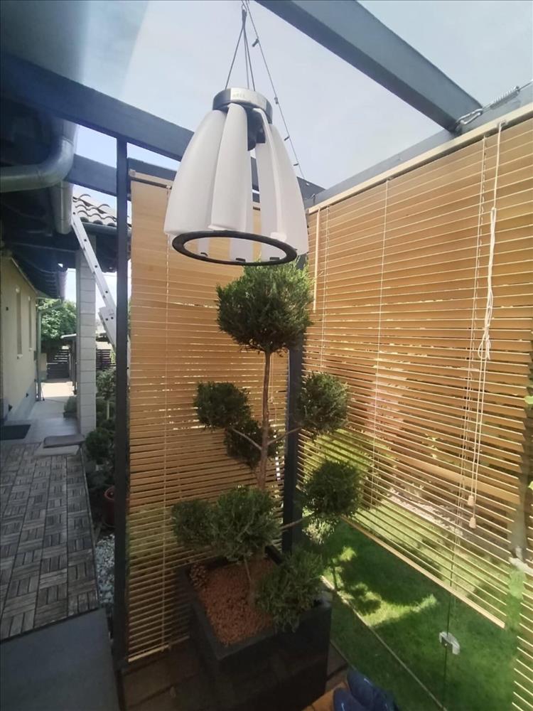 A házhoz tartozik egy 20nm-es üvegezett terasz /ami igény szerint szét is szedhető/. . Itt ülve a gondosan berendezett hangulatos teraszon azt az érzést kelti valahol egy egzotikus helyen nyaralunk.