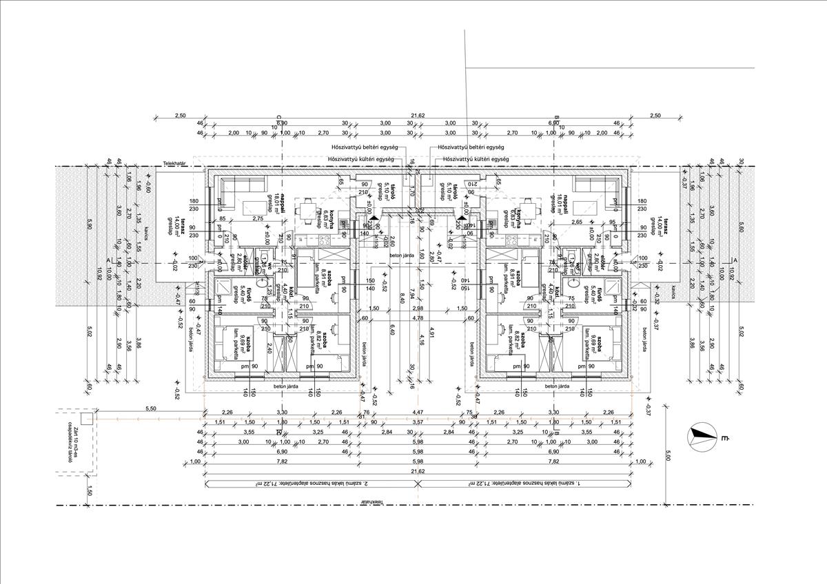 48 cm-es falvastagságot jelent. a ház fűtése hőszivattyúval lesz megoldva padlófűtéssel, így a fűtésköltség alacsony lesz. Nincs a szomszéddal közös fal csak a két tároló köti össze a két házat. (Látható az alaprajzon! )