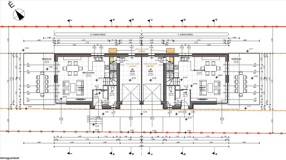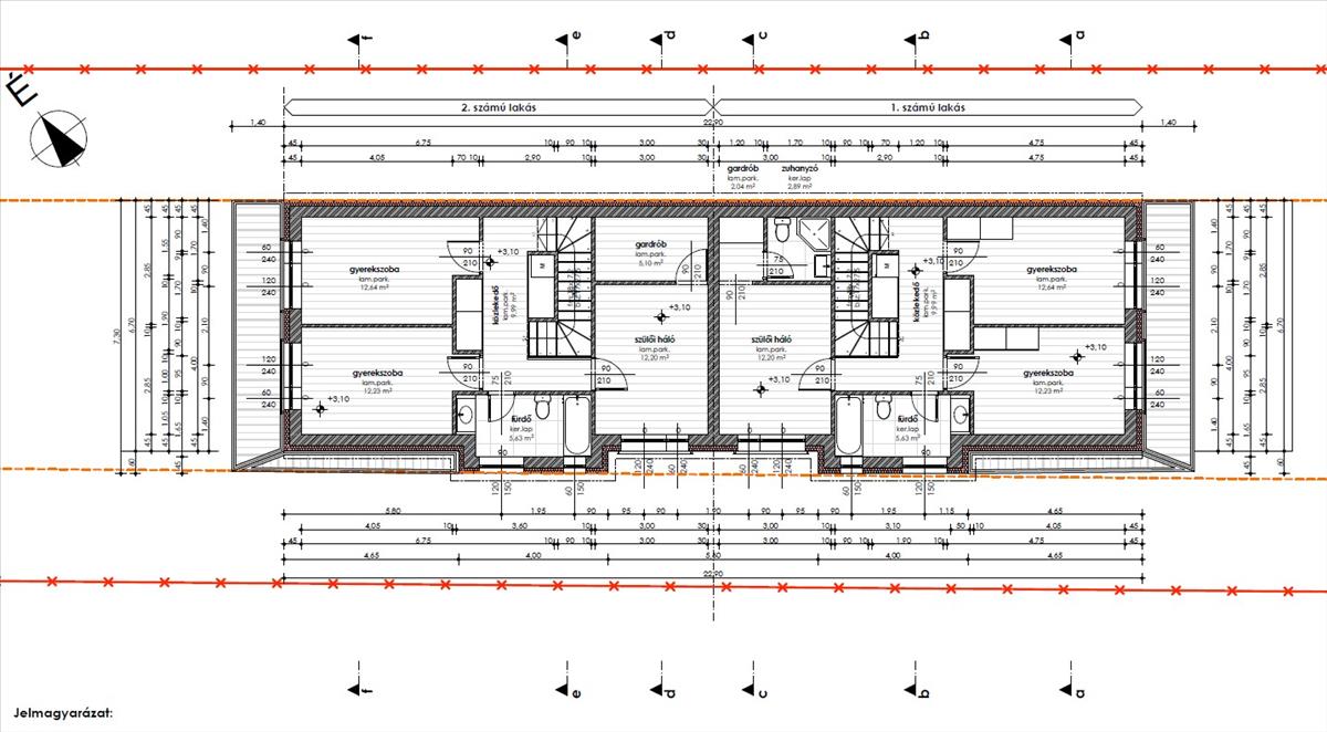 Nappali + 3 hálószoba, amerikai konyha, gardrób (akár 2. Fürdővé alakítható), zárt garázs.