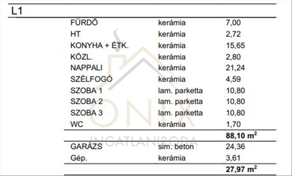 Tetőszerkezet: Fafödémes, tűzálló gipszkartonnal, választható Terran Synus cseréppel.