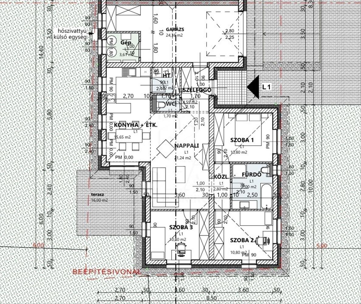 A nettó fűtött alapterületen és a garázson felül a terasz mérete további 16 nm.